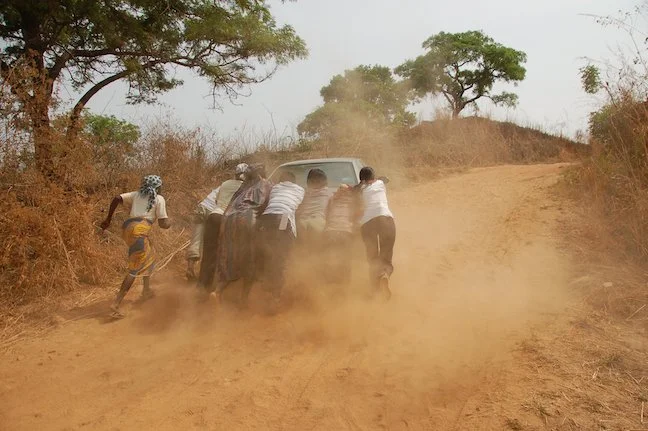 My team and I pushing our broken-down car towards Yashi Madaki in Nigeria. This is basically what it feels like to update your website. 我和團隊在奈及利亞 Yashi Madaki 推著一輛拋錨的車前進——更新網站,就是這種感覺。